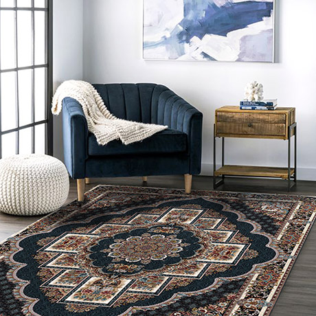 - اگر رنگ مبلمان یا دیوارها تیره است، میتوانید فرشی با رنگ روشن انتخاب کنید تا تضاد ایجاد شود و فضا برجستهتر شود.