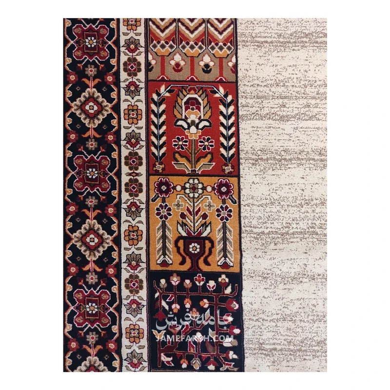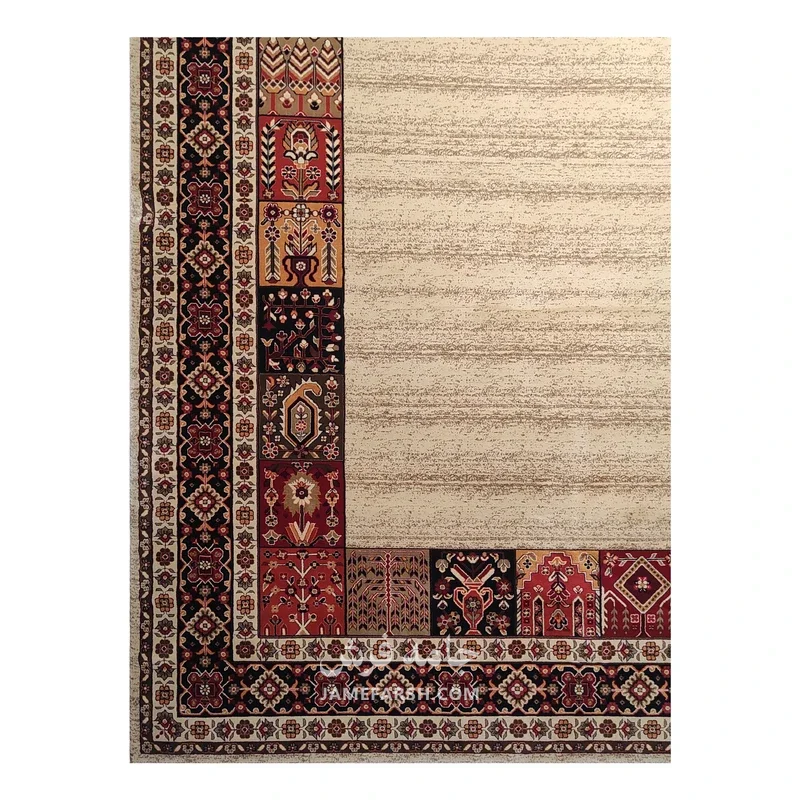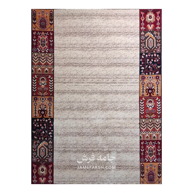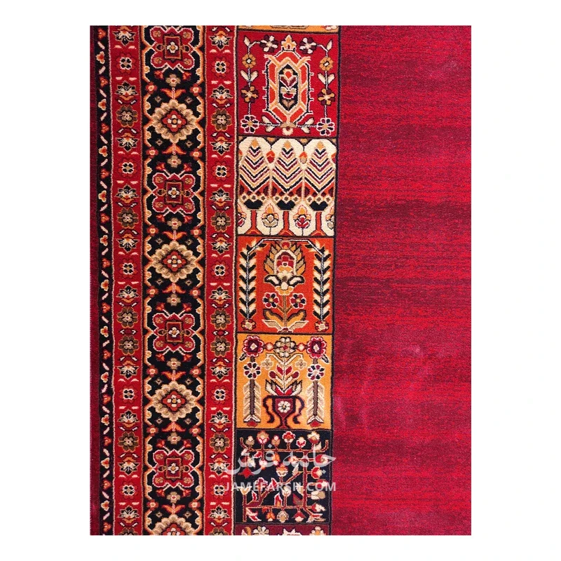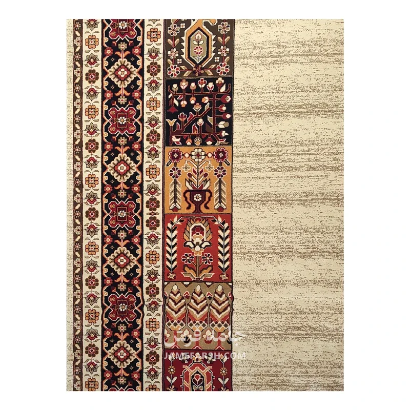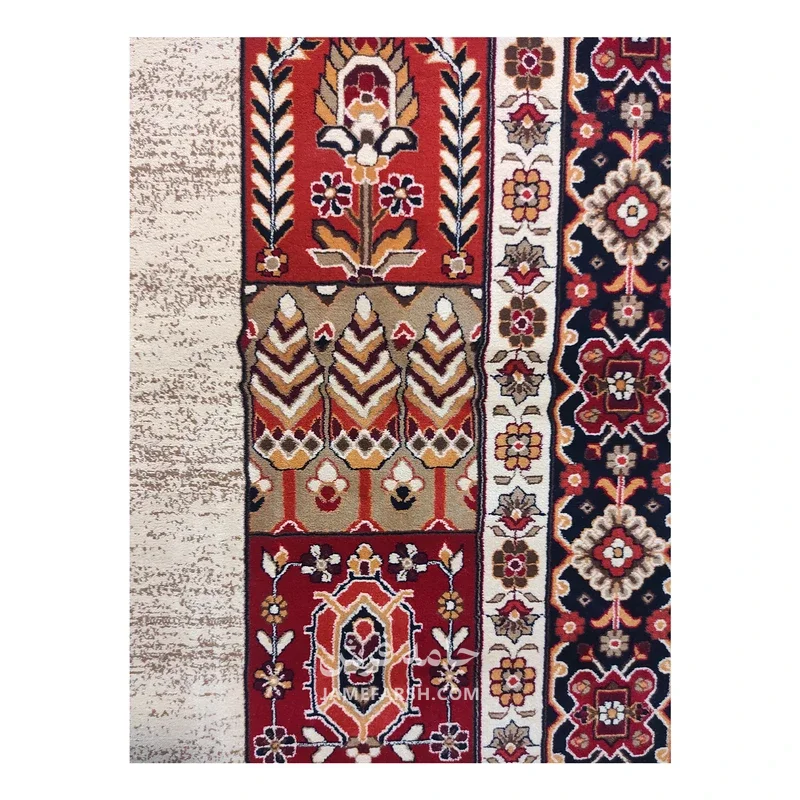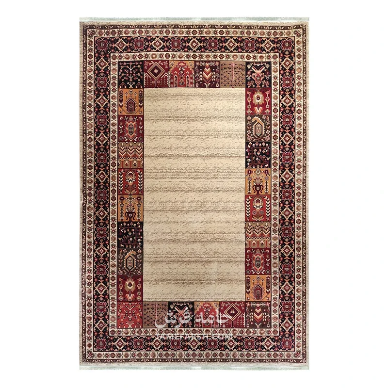 طرح بلوچی، الهامگرفته از دستبافتههای اصیل عشایر بلوچ است. این نقشه با رنگهای گرم (اغلب لاکی و سرمهای) و نقوش هندسی خاص خود، فضایی صمیمی، گرم و پر از اصالت را به دکوراسیون شما میبخشد. سادگی و در عین حال زیبایی نمادین این طرح، آن را به انتخابی خاص برای علاقهمندان به هنرهای بومی تبدیل کرده است.